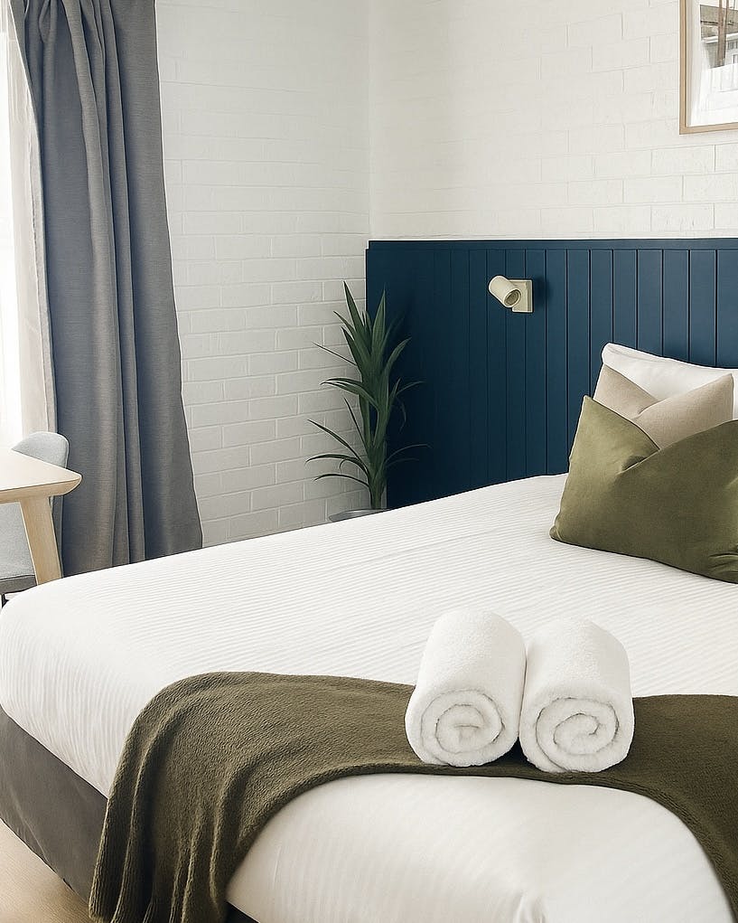 The room features one queen bed, one single bed, ensuite and kitchenette, equipped with;